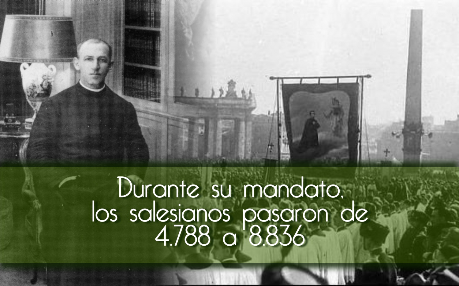 Él encarnó tal interioridad apostólica, que fue la raíz profunda de una actividad sorprendente. Basta recordar que, durante su mandato, los salesianos pasaron de 4.788 a 8.836, con un crecimiento promedio de 450 por año, y las casas de 404 a 644. La beatificación de Don Bosco, en 1929, fue la ocasión que él valorizó por toda la concreta renovación espiritual y apostólica, abrió con 7 aspirantados misioneros y preparó expediciones de proporciones excepcionales, con el envío en misión de jóvenes - novicios y posnovicios.