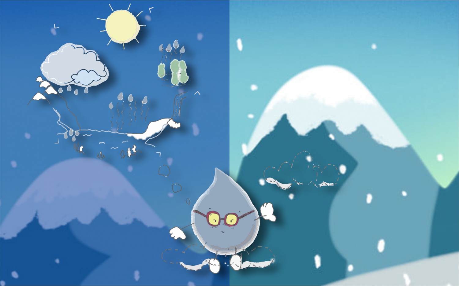 - A todas las gotitas que estamos aquí nos encanta ser copitos de nieve durante muchos días, por eso nos hemos juntado en esta nube. Hace años, intenté varias veces nevar por mi cuenta, hasta que descubrí que no podría hacerlo sola. Y encontré esta nube genial, donde todas ayudamos un poquito, y gracias a todos esos poquitos hemos conseguido hacer ¡las mejores nevadas del mundo!
