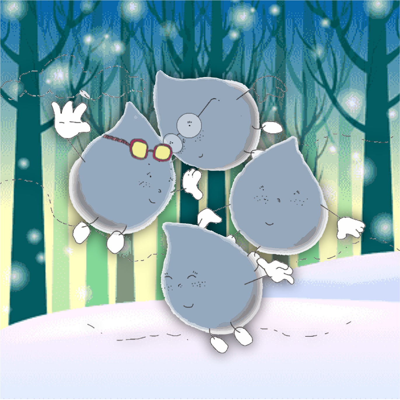 Poco después ambas gotitas volaban por el cielo en forma de copos de nieve, rodeadas de millones y millones de copos que cubrieron las verdes praderas de blanco. Y con inmensa alegría comprobó nuestra gotita, que cuando todos colaboran puede conseguirse hasta lo que parece más imposible.